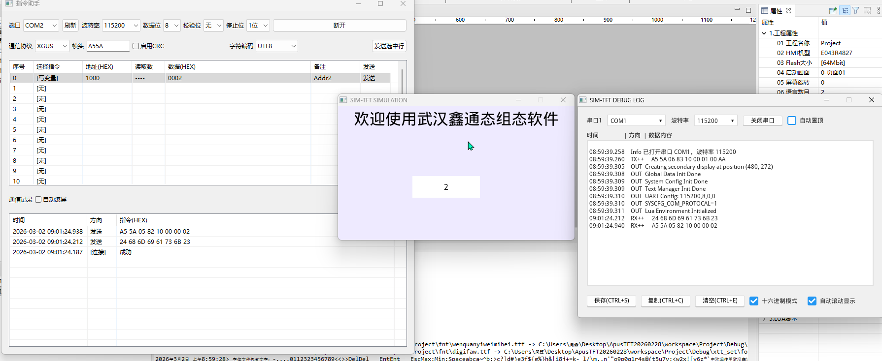 AupsTFT和虚拟屏调试,适用于DCBUS和XGUS协议