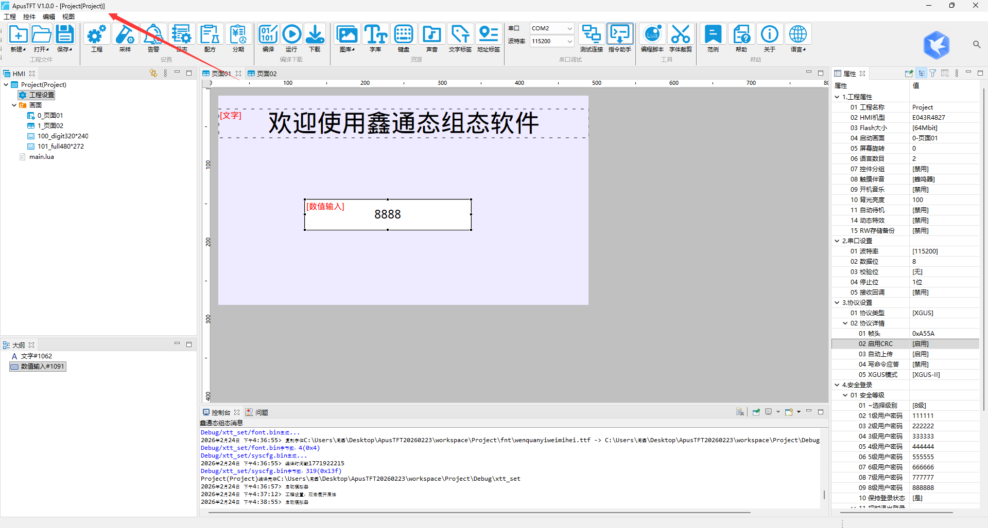 使用数值控件,将关联SysFWVer(LW0155)。编译后,用SD卡或U盘下载到实体屏查看