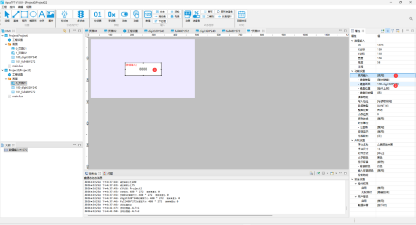 新建工程会默认在画面 ID100 和 ID101 自动生成键盘画面,ID100 为数字键/密码键盘,ID101为全键盘。