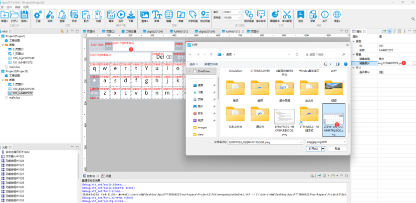 点击软件 ApusTFT菜单栏中【键盘】按钮 ,键盘设置的弹窗中可以修改、恢复系统绑定的键盘画面