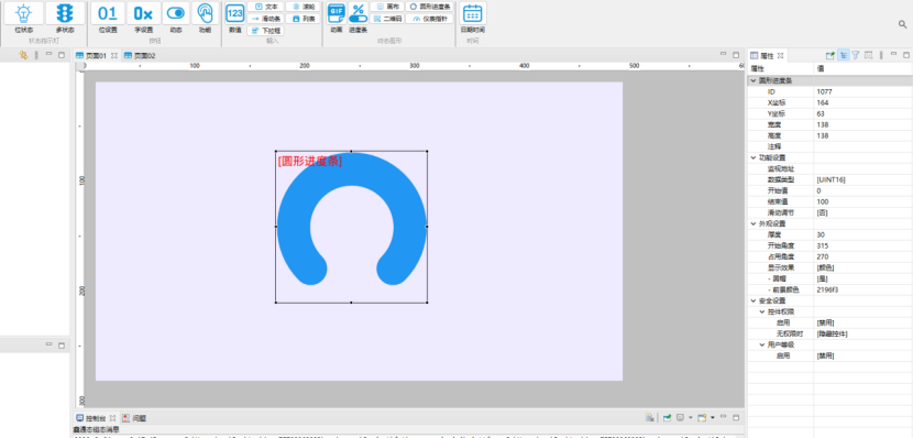 选中菜单栏中【圆形进度条】 ,在画面中添加一个圆形进度条控件。