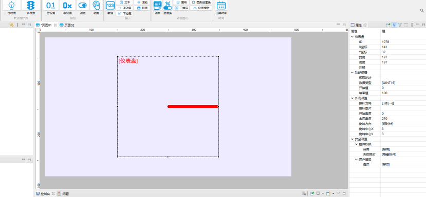 选中菜单栏中【仪表指针】 ,在画面中添加一个仪表指针控件。