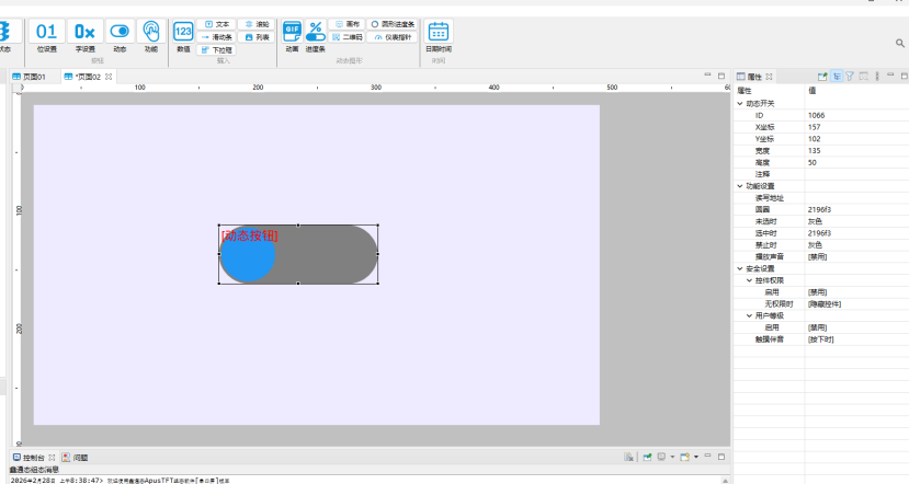 动态按钮是一种具备视觉切换反馈的交互控件,常用于模拟物理开关或状态切换操作(如启停、使能/禁用)。其核心特征为: