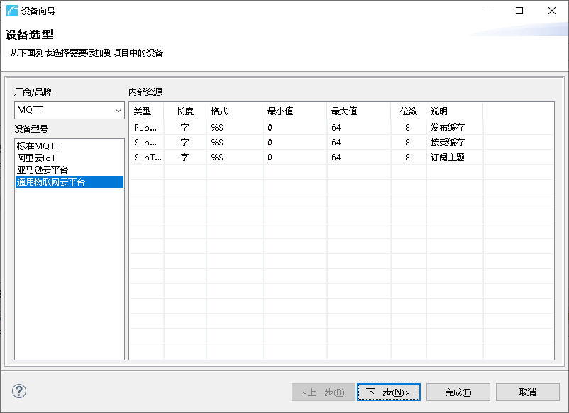 4.2 左侧列表选中网络,右侧协议列表中显示“通用物联网协议”,双击