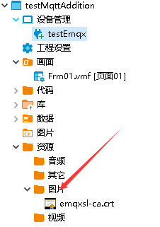 如上图输入:用户名密码是上面EMQX风站上的客户端认证时添加的;服务器证书下载下来,放到 资源/图片 目录中